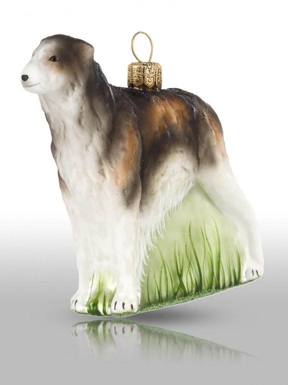 Prachtige kerstbal van glas van een wolfshond, barsoi. Handbeschilderde kerstbal voorzien van mooie details. Prachtige kwaliteit kerstfiguur van echt glas voor jaren plezier.